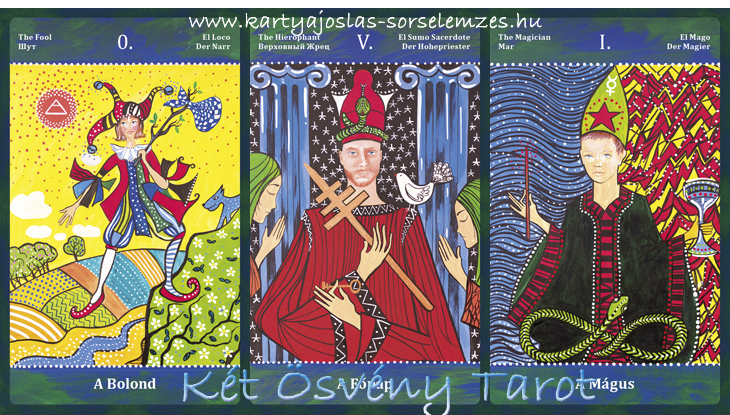 Mai lapjaink: a Bolond (0), a Főpap (V), a Mágus (I)