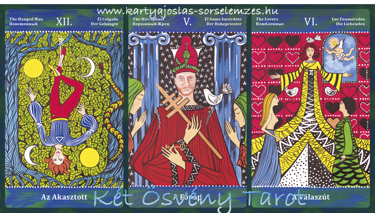 Lapjaink: az Akasztott (XII), a Főpap (V) a Válaszút (VI)