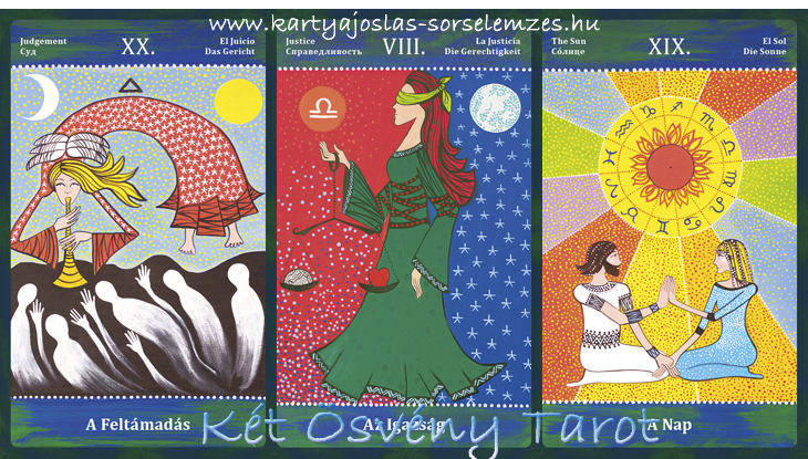 Mai lapjaink: a Feltámadás (XX Végítélet), az Igazság (XI), a Nap (XIX)