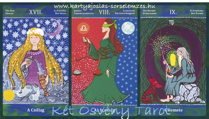 Mai lapjaink: a Csillag (XVII), az Igazság (XI), a Remete (IX)