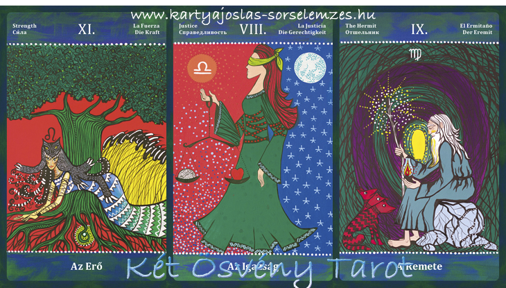 Mai lapjaink: az Erő (VIII), az Igazság (XI), a Remete (IX)