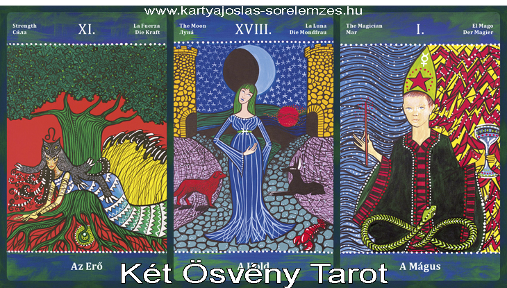 Mai lapjaink: az Erő (VIII), a Hold (XVIII), a Mágus (I)