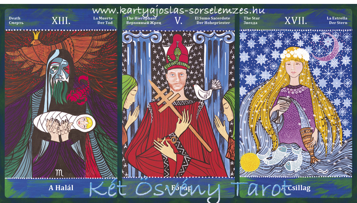 Mai lapjaink: a Halál (XIII), a Főpap (V) és a Csillag (XVII)