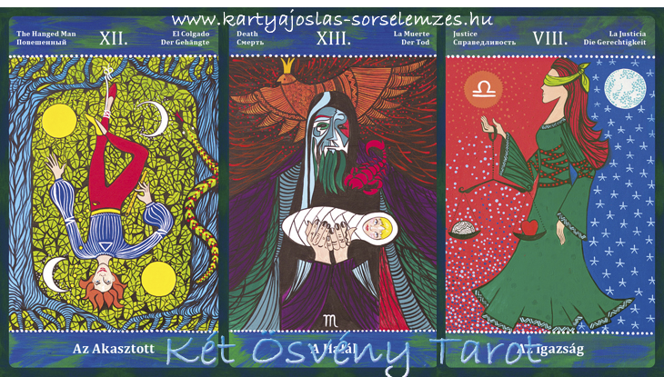 Mai lapjaink: az Akasztott (XII), a Halál (XIII), az Igazság (XI)