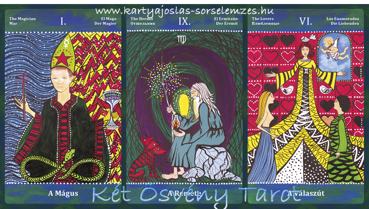 Mai lapjaink: a Mágus (I), a Remete (IX), a Válaszút (VI)