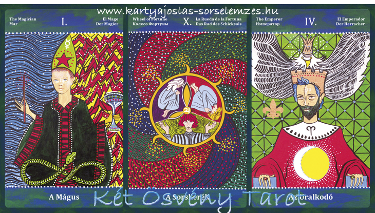 Mai lapjaink: a Mágus (I), a Sorskerék (X), az Uralkodó (IV)