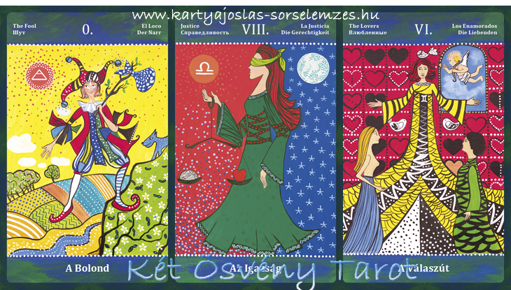 Mai lapjaink: a Bolond (0), az Igazság (XI) és a Válaszút (VI)