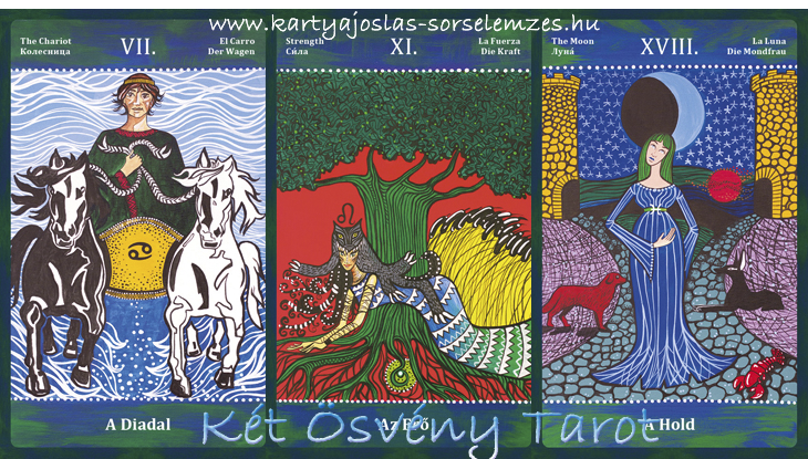 Mai lapjaink: a Diadal (VII), az Erő (VIII), a Hold (XVIII)Képek: Két Ösvény Tarot