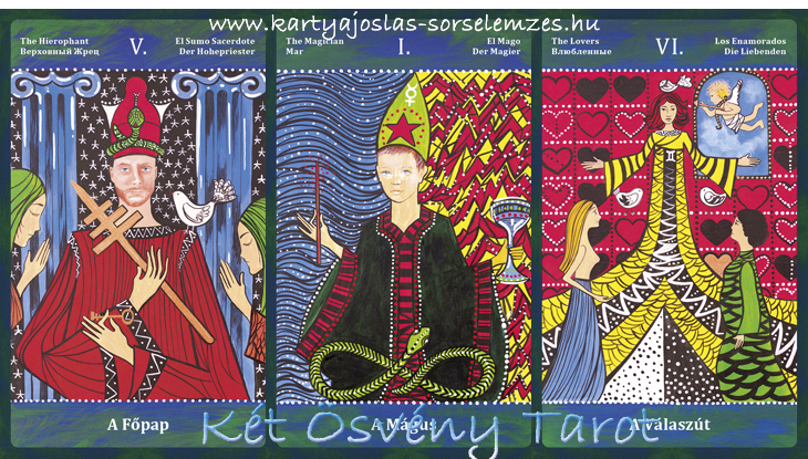 Mai lapjaink: a Főpap (V), a Mágus (I) és a Válaszút (VI)