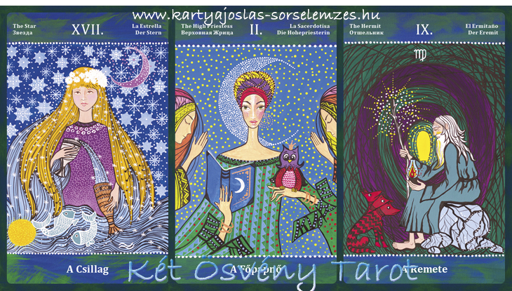 Mai lapjaink: a Csillag (XVII), a Főpapnő (II), a Remete (IX)