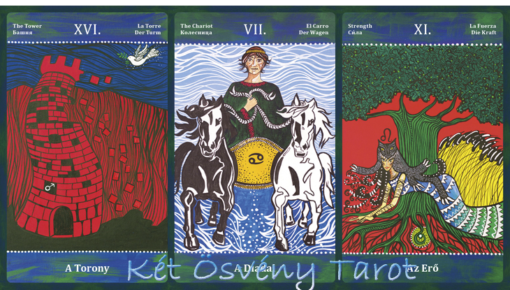 Mai lapjaink: a Torony (XVI), a Diadal (VII) és az Erő (XI)Képek: Két Ösvény Tarot
